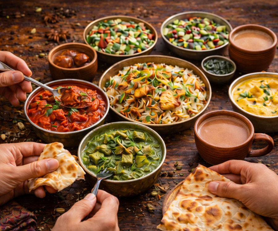 Probieren Sie unsere berühmten Spezialitäten wie das Matka Dum Biryani – ein aromatischer Gewürzreis, im traditionellen Lehmtopf gegart.